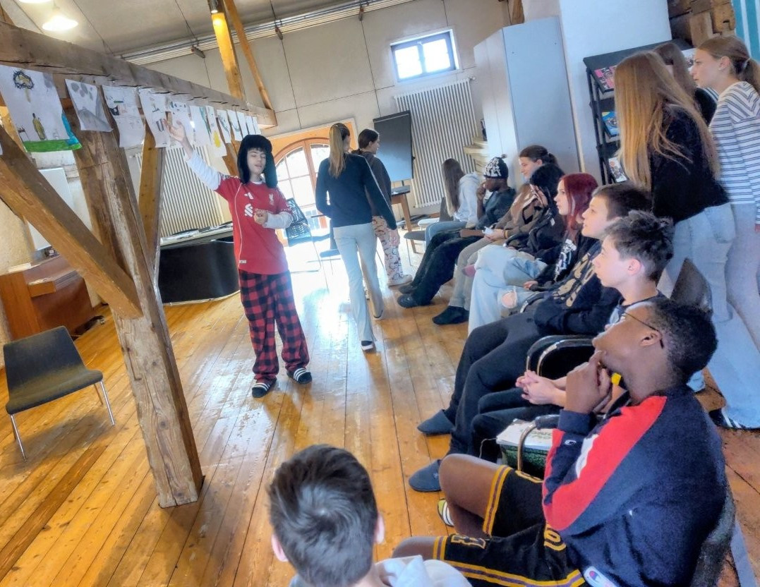Am nächsten Morgen machten sich die 16 Konfis zunächst einmal daran, das Vaterunser in die heutige Sprache zu übersetzen. Anschließend ging es um einen der bekanntesten und beliebtesten Texte der Bibel, dem Psalm 23 „Der Herr ist mein Hirte“. Jede:r zeichnete dazu ein Bild das anschließend in der Gruppe präsentiert wurde. Die Konfis schlugen Psalmen in der Bibel auf, formulierten Gebete auf einem als Gebetswand gestalteten Plakat und schrieben sich selbst eine Karte mit Vorsätzen zum Beten.