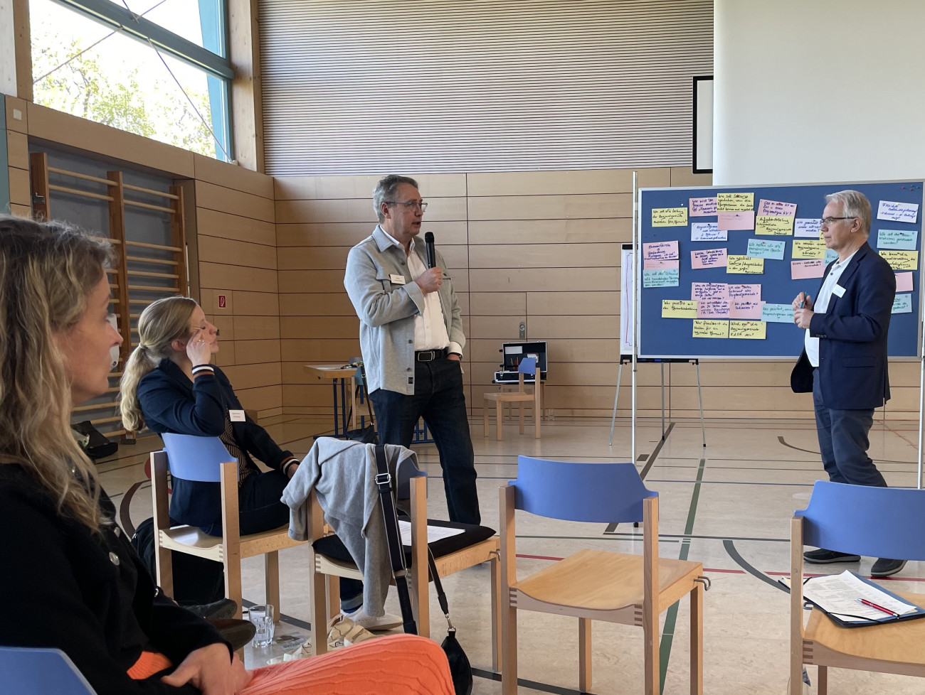Was sind unsere Schätze oder welche Bedenken haben wir zum Thema Regionalgemeinde? Gruppenarbeit hielt die Synodal:innen in der Turnhalle der Evangelischen Realschule Ortenburg in Bewegung.