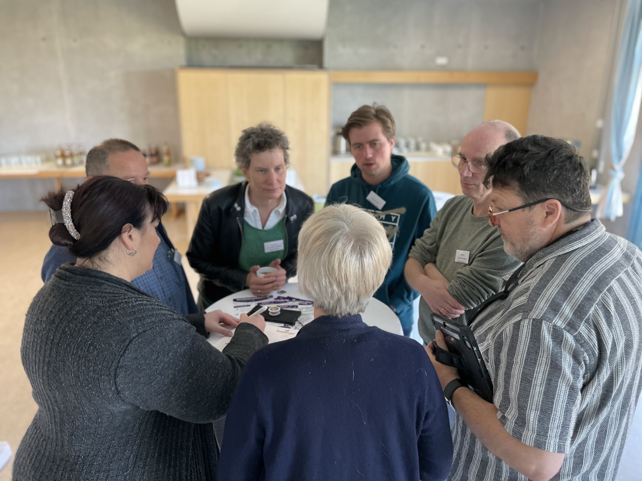 Eine Arbeitsgruppe diskutiert am Stehtisch
