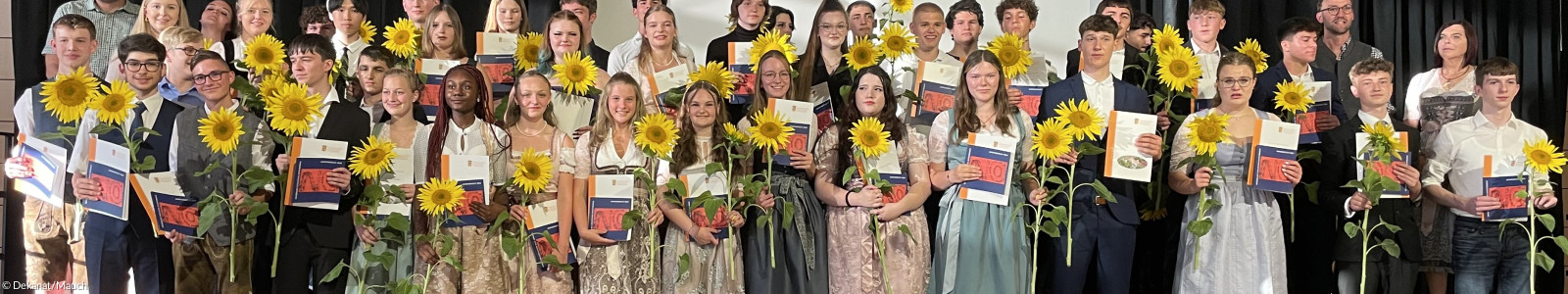 Vor der Zeugnisübergabe in der Turnhalle auf dem Schulcampus verneigte sich Dekan Jochen Wilde aus dem Vorstand der Evangelischen Erziehungsstiftung symbolisch vor der Leistung der Absolvent*innen. Er sei sich sicher, dass sie an der Evangelischen Realschule bestens ausgebildet wurden. Er wünscht ihnen auf ihrem weitern Weg Menschen, die ihnen zuhören, sie miteinbeziehen und ernstnehmen. Der stellvertretende Landrat Klaus Jeggle sagte in seinem Grußwort, dass Menschen mit Bildung die Gesellschaft beeinflussen und auf sie kritisch schauen könnten. Sie seien daher von Populisten nicht mehr so leicht zu manipulieren. „Arbeit und Beruf muss Freude machen“, müsse zur Person passen. Für Ortenburgs Bürgermeister Stefan Lang, selbst ehemaliger Schüler der Evangelischen Realschule, betonte, dass Niederbayern für die Entwicklung unserer Heimat engagierte junge Menschen brauche. Er rief den Schüler*innen zu: „Es beginnen jetzt die schönsten sechs Wochen eures Lebens: Lasst es krachen!“